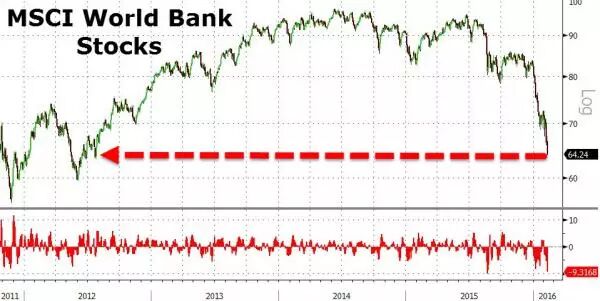明晟全球银行股票指数显示,全球的银行股,在过去的7个交易日,平均跌幅达到15%以上。
