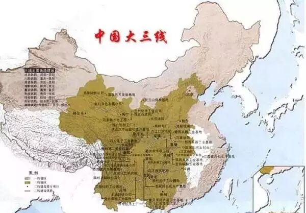 为了抗御外敌,毛泽东提出三线建设的战略构想:他把全国划分为前线、中间地带和战略后方,分别简称为一线、二线和大三线。按照中国军事经济地理区划,沿海地区是第一线,包括沿海和边疆省区,如北京、上海、天津、辽宁、黑龙江、吉林、新疆、西藏、内蒙古、山东、江苏、浙江、福建、广东等。