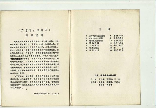 本活页画册记录并反映了上个世纪60年代,参加举世闻名的成昆铁路建设的广大铁道兵指战员和各条战线参战的筑路员工,遵照伟大领袖毛主席"三线建设要抓紧,成昆铁路要快修"的指示,不怕困难,不怕牺牲,前仆后继,英勇奋战,终于在被外国专家称为"此路不通"的崇山峻岭悬崖峭壁中建成了1000多公里的战备铁路.创造了人类筑路史上的奇迹!
