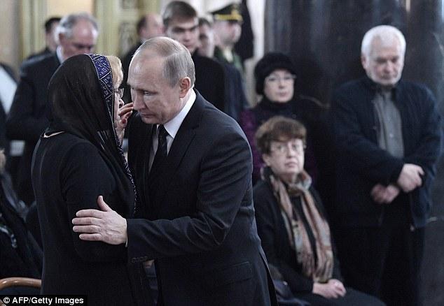 普京安慰遇害大使的妻子玛丽娜(Marina Davydova Karlova)。