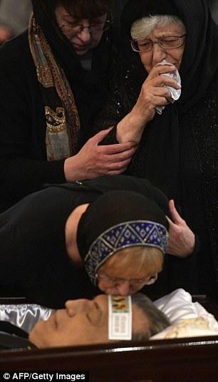 卡尔洛夫的妻子玛丽娜和他的母亲玛利亚(Maria)在葬礼仪式上和卡尔洛夫道别。