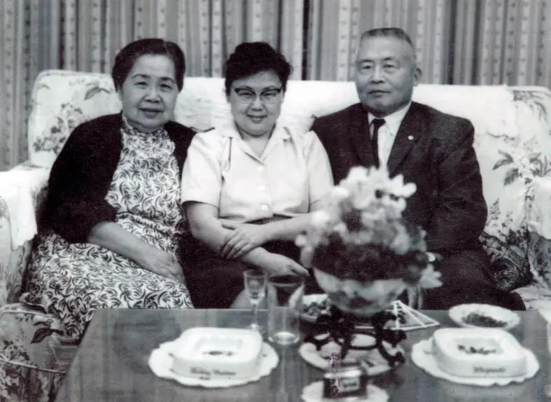 1964年,李桓英(中)与父母于香港。 北京市委宣传部供图