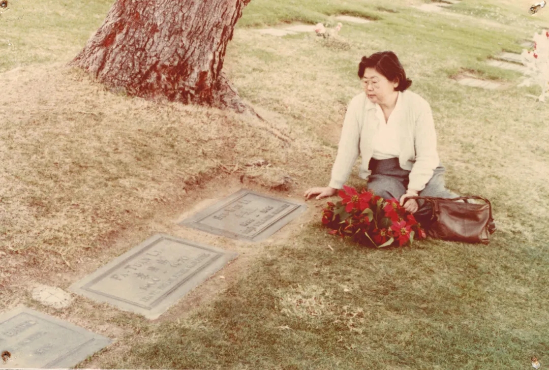 1980年,李桓英在美国洛杉矶父母的墓地前。 北京市委宣传部供图